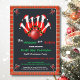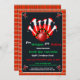 This festive Christmas bowling party invitation features Santa-themed bowling pins and a bright red holiday bowling ball set against a cheerful Christmas plaid background the perfect design to spread seasonal fun and party cheer.