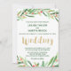 Este cartão de convite para casamento de natal Holly Wreath é perfeito para um casamento no inverno. O design apresenta uma coroa verde aquarela com bagas vermelhas e uma elegante letra de brilho dourado. Nota: Este design não apresenta brilho de ouro real. É um gráfico de alta qualidade feito para parecer um brilho de ouro brilhante.
