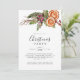 Rustic and modern Christmas dinner party invitation card featuring watercolor illustration of winter botanicals - oranges, mistletoe, pine tree branch, etc.