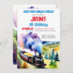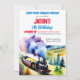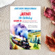 Chugga chugga trem festa de aniversário modelo de convite para descarregamento instantâneo, trem a vapor vintage atravessando o campo colinas azul e vermelho