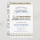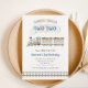 Chugga Chugga Two Two Train Birthday Party invitation featuring a blue and beige train and train tracks. Perfect for a 2nd birthday party!
