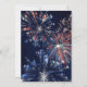 Convite de churrasco vermelho branco e azul com fogos de artifício em um fundo de céu noturno.