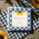Este convite para o CHURRASCO de aniversário deste país vem enfeitado com um design de toalha de mesa com verificação de picnic azul com um girassol amarelo em formato quadrado único. Os detalhes do seu churrasco estão definidos em tipografia sans em um marrom elogioso. O design de papel vintage é transportado para o fundo do seu convite. Perfeito para festas de churrasco de companhia de verão, família junta convites, convites de churrasco ou o que você quiser. Para ver mais convites, visite VG Convidados em