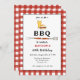 Burger Rustic & Beer CHURRASCO Aniversário convite de festas de Convite com borda de xadrez vermelha e branca.