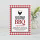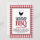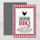 Um tema divertido ao ar livre, chá de casamento de verão com um padrão clássico de búfalos vermelho e branco e uma silhueta de frango fofa.