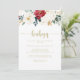 Este clássico convite de churrasco floral para o chá de fraldas BabyQ é perfeito para um chá de fraldas de casais rústicos ou para um bebê borrifador. A design apresenta a cor-de-água, flores brancas, borrifadas e douradas e bagas com folhagem verde dispostas em buquês elegantes.