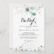 Este convite para churrasco floral de ouro rústico para o chá de fraldas BabyQ é perfeito para um chá de fraldas simples de casais ou um pulverizador de bebês. Este design artístico apresenta folhagem verde de ouro desenhado à mão e cor d'água eucalipto, inspiradora beleza natural.