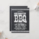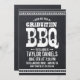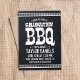 convite de festas legal de churrasco de graduação rústica com tipografia vintage angustiada sobre fundo chalkboard falso. Personalize-o com seus detalhes de festa de formatura. Espaço adicional do vazio no verso para fotos ou mais texto. Clique em Personalizar para editar fontes e cores para criar um convite de festas de CHURRASCO de graduação exclusivo.