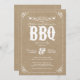 Design de convite de festas de chic chic do ensaio de natação moderno, vintage country, com tipografia elegante rustica e pontilhada, com detalhes de canto de rolagem vintage em um fundo de textura de canvas faux burlap impresso. Clique no botão PERSONALIZAR TI para personalizar fontes, mover texto e criar seu próprio design de convite exclusivo.
