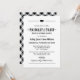 Acenda o espeto e levante um copo com este ousado convite de chá de casamento de casal "Churrasco de Porco e Brinde" em clássico preto e branco. Tipografia em estilo vintage, uma silhueta de porco charmosa e um floreio decorativo dão a ele um sentimento rústico, mas sofisticado, com um padrão xadrez preto coordenado no verso do cartão. Todo o texto é totalmente personalizável com os nomes do casal, data, local e detalhes do anfitrião.