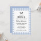 Celebre a mamãe e o bebê a estarem com este convite de festas de churrasco de quintal bebê-q que apresenta uma alegre tomada do padrão clássico de pano de piquenique de xadrez gingham em azul e branco macio mais o detalhe charmoso das ferramentas de grelhar com um coração. Personalize o texto para se adequar aos detalhes do seu partido com caixas de texto flexíveis ou mude ainda mais sobre o design, como as cores e as fontes.