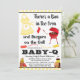 Celebre o seu pequeno convite para o chá de fraldas Baby-Q, neutro em termos de gênero, com um pão divertido no forno e hambúrgueres sobre o tema da grelha, perfeito para festas de quintal de verão honrando os pais a serem.