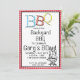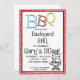 Vermelho e branco verificaram o fundo com uma incisão branca com churrasco de palavras coloridas, Comemoram um aniversário marcante com amigos, família, bebidas e uma festa de excelente, Seus convidados adorarão receber este convite festivo anunciando a grande festa de aniversário.