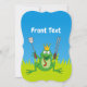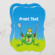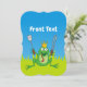 Príncipe sapo com ferramentas de CHURRASCO, amêijoas e espátula sobre grama verde sob o céu azul.
