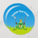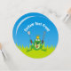 Príncipe sapo com ferramentas de CHURRASCO, amêijoas e espátula sobre grama verde sob o céu azul.