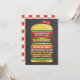Hambúrguer Empilhado Único com cebolas, picles, alface, cachorro-quente, queijo, mostarda, ketchup, sobre fundo de quadro. Um padrão de piquenique vermelho de gingham está atrás do convite. Seu convidado adorará este convite único. Personalize com seu próprio texto. Por favor, procure na minha loja mais assim. Ilustração Original por pj_design. Envie-me um e-mail se precisar de ajuda. Você pode tornar esta placa maior personalizando-a e clicando nas opções de papel.