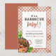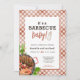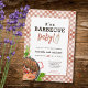 O nosso convite de chá de bebê neutro em relação ao gênero para churrasco rústico moderno é projetado com um fundo xadrez marrom, uma grelha ilustrada em aquarela, uma combinação de tipografia lúdica em negrito e manuscrita, combinada com folhagens e uma mamadeira. Este convite é perfeito para uma celebração de festa ao ar livre no quintal de trás durante o verão.
