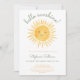 Este convite de baby shower fofo apresenta um sol em aquarela e lê "Olá, Luz do Sol!" em tipografia elegante em verde-sage.