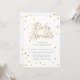 Com bonitos corações de amor dourados espalhados em torno dos seus detalhes personalizados em texto elegante neste convite de chuveiro de bebê, festa de bebê ou festa de casal chic e neutro em termos de gênero. Criado por Thisisnotme©