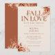 Um convite elegante para chá de bebê no outono com tipografia terracota elegante e folhagem floral rústica. Criado por Thisisnotme©