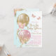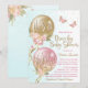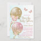 Convite de festa de bebê menina covid com balões cor-de-rosa e dourados bonitos com flores, borboletas e laços em um fundo azul e branco. Este convite de festa de bebê drive-by cor-de-rosa, dourado e azul turquesa é facilmente personalizado com os detalhes do seu evento.