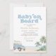 Convide amigos e familiares para celebrar um pequeno que está a caminho com este convite de chuva de bebê temático de surf.