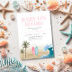 Traga vibrações ensolaradas de praia para a sua celebração com este Convite de Chuva de Bebê Baby On Board! Com características de pranchas de surf pintadas à mão, ondas do oceano, palmeiras e um design de praia arenosa — perfeito para uma chuva de bebê tropical ou com tema de verão.