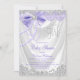 Convite de chuva de bebê lilás com cetim branco elegante e pérolas bonitas e laço roxo de diamante em um fundo de cetim branco. Este convite de chuva de bebê roxo e prata é facilmente personalizado para o seu evento, basta adicionar os detalhes do seu evento no estilo de letra, cor e redação de sua escolha.