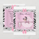 Convites Chuva de Bebê Bela Zebra Bebê Menina Renda Rosa