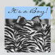 Convite de chuva de bebê menino azul elegante e adorável zebra. Adicione seus detalhes na frente e no verso simplesmente adicionando os detalhes do seu evento, estilo de fonte, tamanho e cor da fonte e texto. Por favor, note que todos os desenhos de convite que você encontrará no Zazzle são gráficos impressos em papel liso sem joias, laços, relevos, rebaixados ou peças ou partes adicionadas.