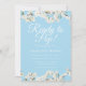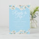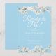 Convite elegante e bonito de chuva de bebê, chá de bebê ou chá de casal com flor de cerejeira prestes a desabrochar, apresentando delicada flor de primavera emoldurando os detalhes do seu evento especial em uma fonte branca elegante em um fundo azul bebê. Criado por Thisisnotme©a