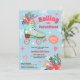 Apresentando uma maneira divertida e vibrante de celebrar sua chegada! Nosso convite para o chá de bebê "Rolando para a Paternidade" apresenta um design retrô, ilustrado à mão, centrado em uma pata branca, enfeitiçada com flores e corações e cadarços cor-de-rosa. O lúgubre fundo azul-claro editável é acentuado com estrelos, corações, elementos florais e padrão geométrico, pontos e grade, capturando um humor animado e alegre. Perfeito para aqueles que amam uma mistura de nostalgia e criatividade, este convite dá o tom para uma memorável chuva de bebês.