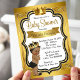 Convite de chuva de bebê preto e dourado com lindo príncipe afro-americano usando uma coroa preta e dourada em um fundo elegante preto e dourado. Você pode personalizar facilmente este lindo convite de chuva de bebê preto e dourado para o seu evento, simplesmente adicionando seus detalhes no estilo de fonte de sua escolha. Este é um design impresso sem brilho real.