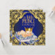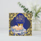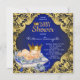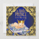 Convite de chuva de bebê de príncipe azul e dourado com adorável bebê menino com coroa dourada em um leito de rosas azuis e travesseiro em um belo fundo azul royal e dourado. Este convite de chuva de bebê de príncipe azul e dourado é facilmente personalizado para o seu evento, adicionando seus detalhes no estilo de letra, cor e redação de sua escolha.