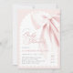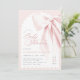 Convite de Chuva de Bebê Elegante com Laço Rosa. Este convite elegante apresenta um charmoso laço rosa bege e uma escrita romântica à mão, perfeito para uma chuva de bebê caprichosa para menina. O laço sofisticado e o design elegante adicionam um toque de sofisticação, enquanto o modelo editável permite uma fácil personalização. Crie um convite lindo e memorável para o seu evento especial.