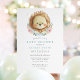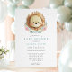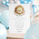 Celebre a chegada de um menino com este convite de chuva de bebê doce e encantador, apresentando um leão em aquarela cercado por flores azuis e rosadas delicadas. Este design traz um toque suave e caprichoso, perfeito para uma reunião inspirada na natureza ou com tema animal.