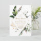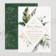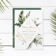 Este convite de chuva de bebê apresenta folhagem tropical verde aquarela, folhas de palmeira, folhas de bananeira com um padrão de folhas tropicais no verso.