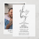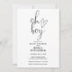 Este convite de chuva de bebê com letra elegante em preto e branco pode ser personalizado com todas as informações da sua celebração especial e foto especial no verso. Criado por Thisisnotme©
