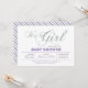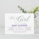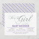 Celebre um dia especial para sua pessoa querida com este convite de chuva de bebê moderno! Este design apresenta uma tipografia simples, porém elegante "É uma Menina" com brilho prateado. Este design de convite de chuva de bebê é perfeito para uma festa com tema de cores prata e violeta.