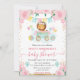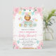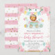 Convites Chuva de Bebê Leão com Flores Rosa em Aquarela