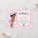 Convite de chuva de bebê marítima para menina afro-americana com adorável bebê étnica vestindo calças rosa franzidas, chapéu de marinheiro e colar de pérolas em um fundo rosa e azul com bolinhas. Você pode personalizar facilmente esses convites de chuva de bebê marítima para o seu evento simplesmente adicionando seus detalhes. Você também pode alterar a cor do fundo.
