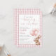 Este convite de chá de bebê encantador apresenta um adorável bebê coelho segurando balões e um fundo xadrez rosa. Criado por Thisisnotme©