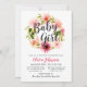 Convites Chuva de Bebê Menina com Coroa Floral Rosa Moderna