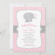Convites Chuva de Bebê Menina Elefante Rosa Moderno