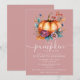 Este convite de chuva de bebê de abóbora aquarela 'uma pequena abóbora está a caminho' moderno e elegante com tom de rosa poeirento e outono rústico pode ser personalizado com suas informações em tipografia estilosa. Criado por Thisisnotme©