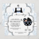 Convites de Chuva de Bebê Menino Azul Damasco Elegantes.