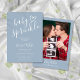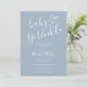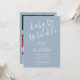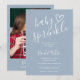 Um convite de chuveiro de bebê minimalista moderno com um coração desenhado à mão fofo e tipografia elegante em um fundo azul empoeirado e sua foto especial no verso. Projetado por Thisisnotme