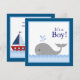 Convite de Chuva de Bebê de barco à vela vermelho, branco e azul adorável tem um barco à vela e uma baleia cuspindo fofa. Este convite de chuva de bebê de barco à vela azul e vermelho é facilmente personalizado para o seu evento, adicionando os detalhes do evento, estilo de fonte, tamanho e cor da fonte e texto.