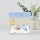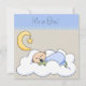 Convites de chuveiro de bebê menino adormecido bege e azul adoráveis. Este convite de chuveiro de bebê menino com lua e estrelas é facilmente personalizado para o seu evento, adicionando os detalhes do evento, estilo de fonte, tamanho e cor da fonte e texto. Alguns gráficos ©Alice Smith.