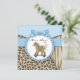 Convites de Chuva de Bebê Menino Cavalo Marinho Azul com estampa de leopardo marrom e tigre adoráveis. Este convite de chuva de bebê do cavalo marinho azul e marrom é facilmente personalizado para o seu evento, adicionando os detalhes do evento, estilo de fonte, tamanho e cor da fonte e texto.